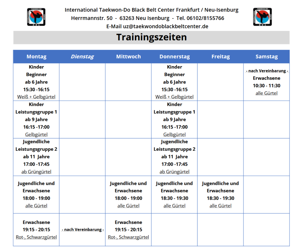 International Taekwon-Do Black Belt Center Frankfurt / Neu-Isenburg